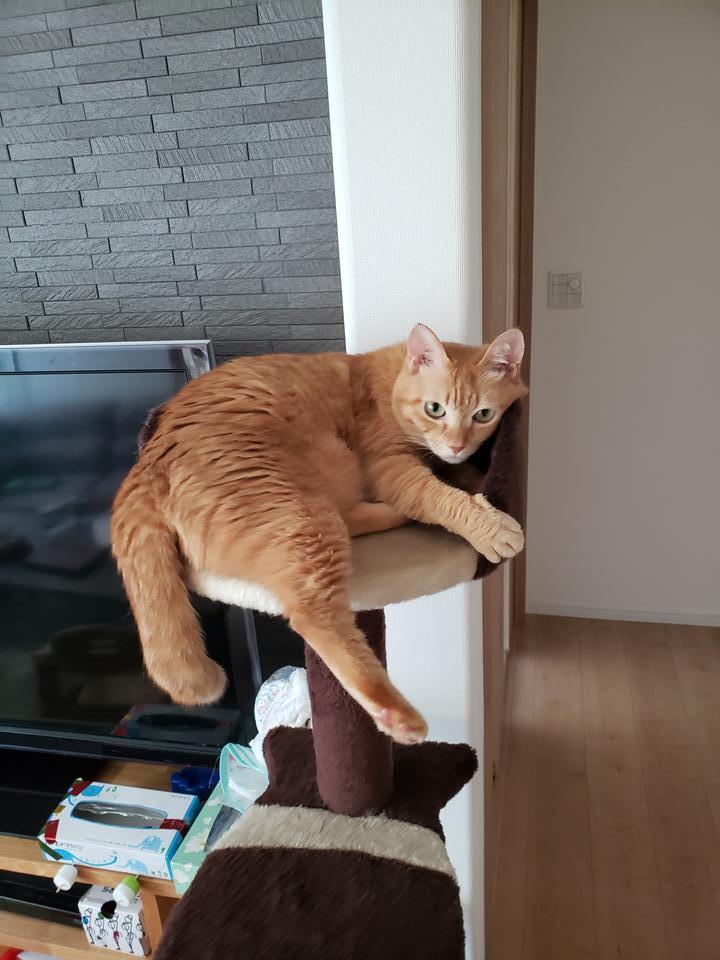 奥さんの実家にあったキャットタワーをもらってご満悦の様子。